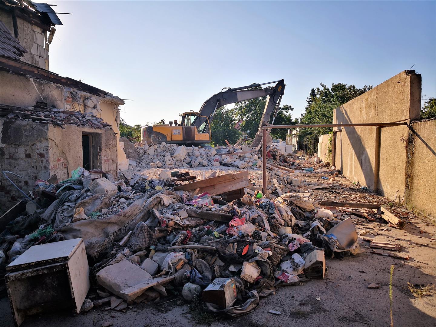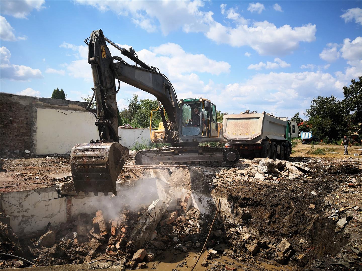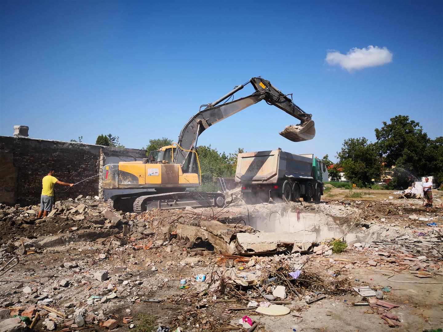 Imediat după obținerea autorizației de demolare a fost angajată o firmă care a efectuat lucrările de demolare și transport, precum și sortare și reciclare. Au fost transportate 48 de camioane de 20 m3.